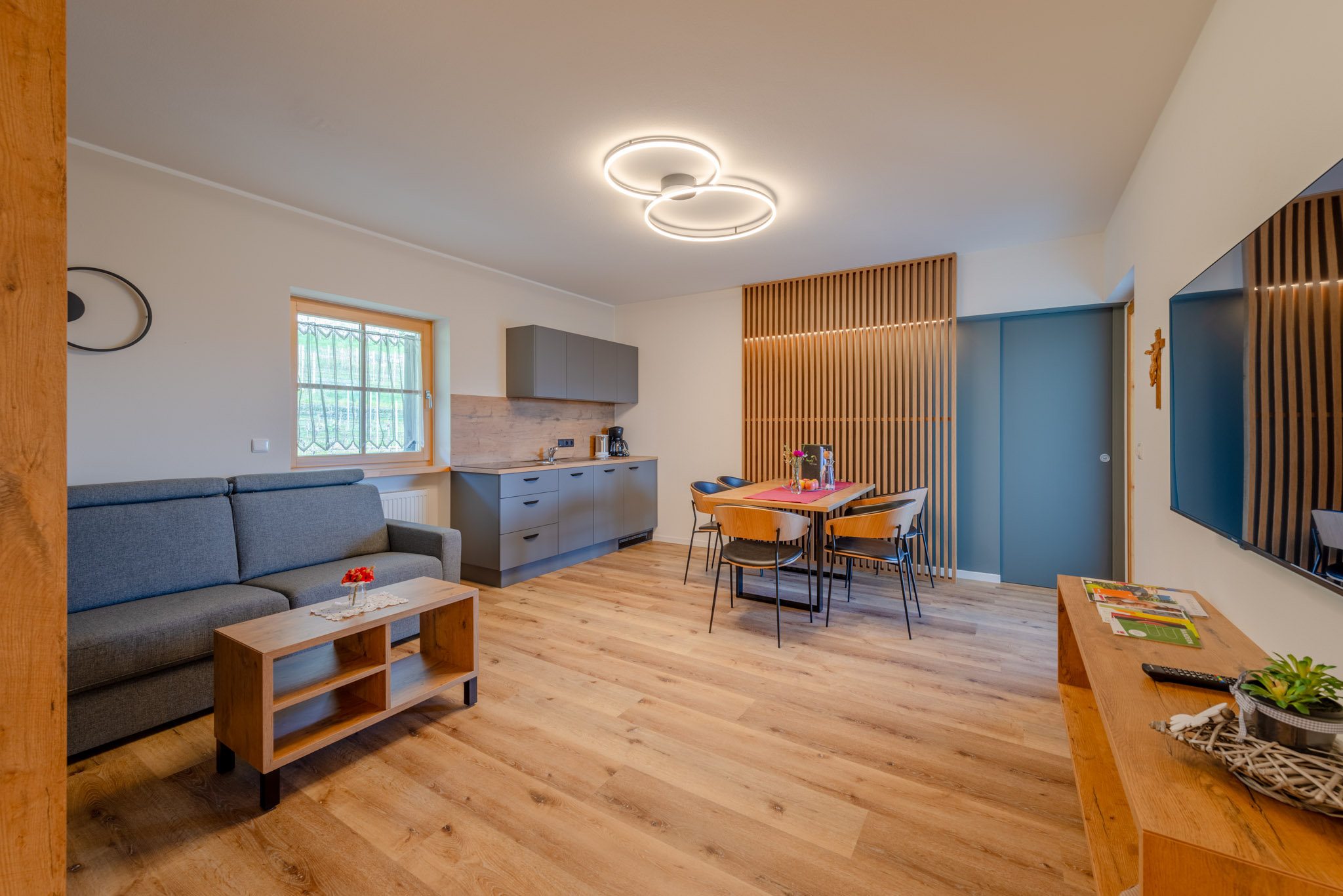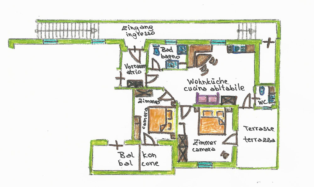 L’appartamento Mela è grande ca. 62,5 m², si trova al 1. piano e offre posto a 2 – 6 persone. È arredato con cura.