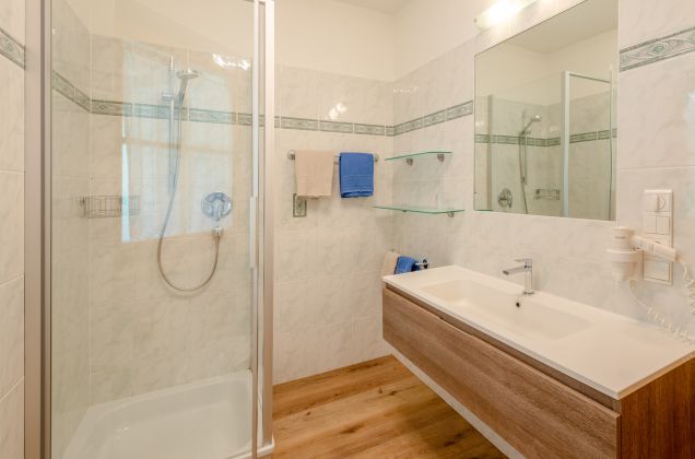 - 1 bagno con ampia doccia, WC e fon