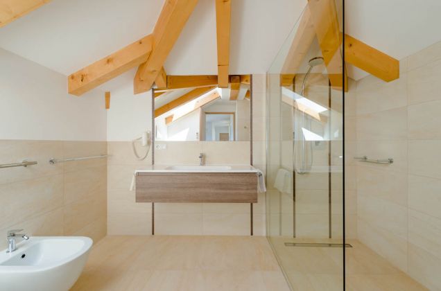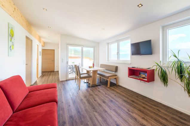 La mansarda Ciliegia è grande ca. 65 m², si trova alla soffitta e offre posto a 2 – 6 persone. È arredata con cura.