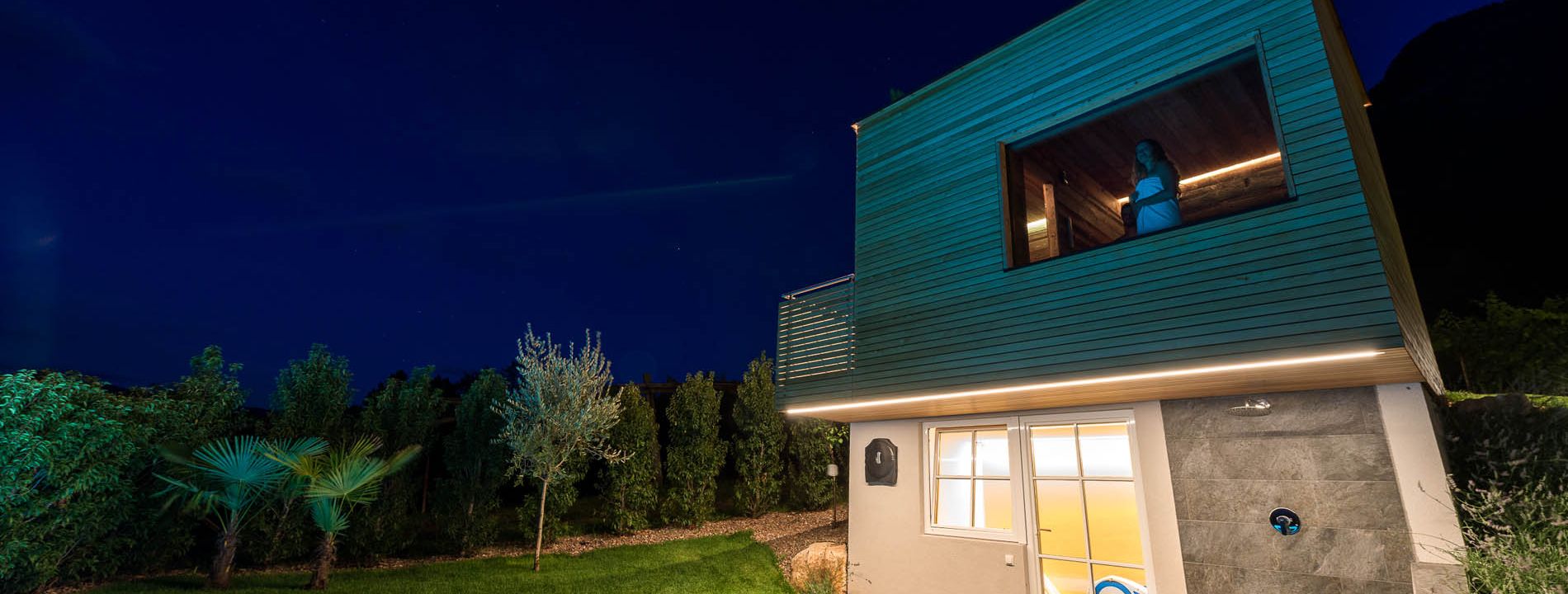 Non importa se dopo una faticosa escursione, una giornata uggiosa oppure soltanto per concedersi qualche momento di relax - venite a vivere momenti indimenticabile nella nostra sauna finlandese panoramica con sauna infrarossa nell’atrio. Un’oasi di pace tra vigneti e frutteti.