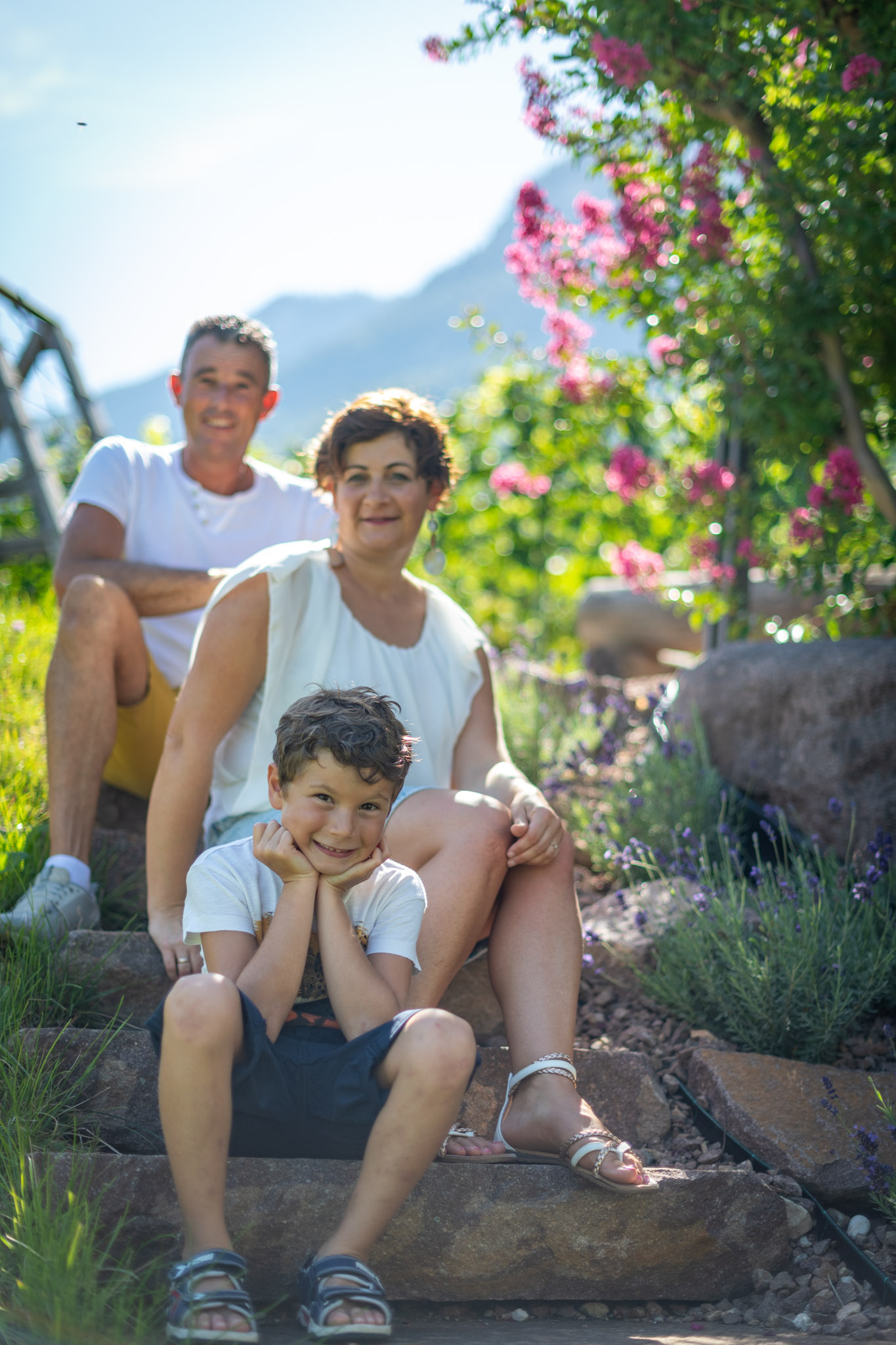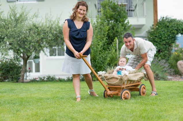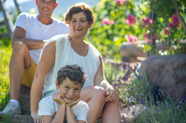 Insieme col nostro figlio Elias ci occupiamo del nostro piccolo angolo di paradiso che amiamo dal profondo del cuore. Siamo molto contenti di vivere a stretto contatto con la natura. Siamo circondati dal verde, ma non viviamo fuori dal mondo. Godiamo di un perfetto equilibrio tra tranquillità, attività per il tempo libero e lavoro quotidiano.