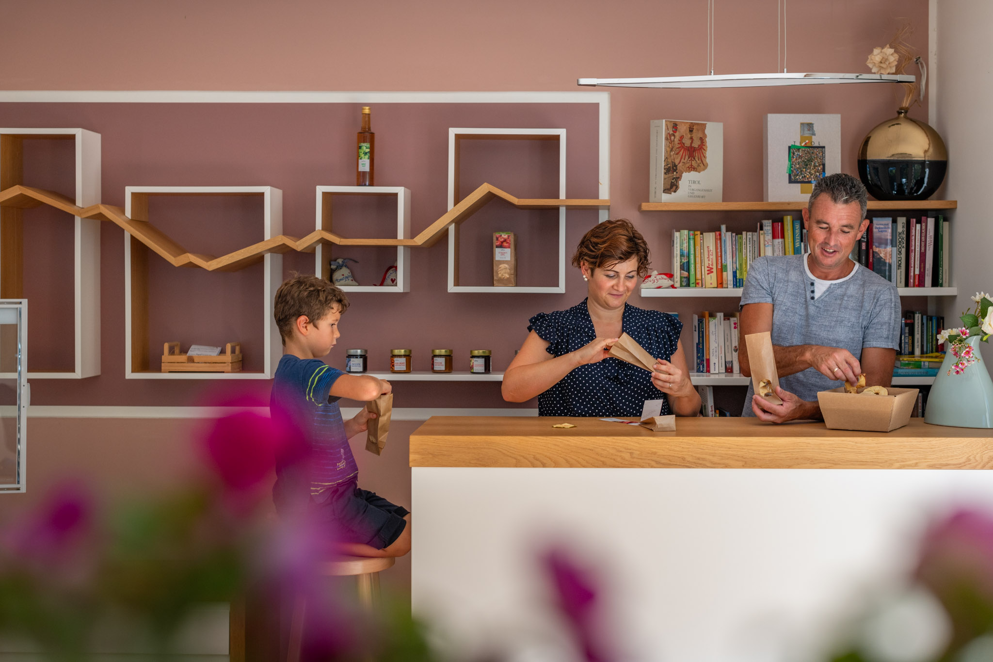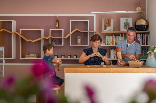 Il negozio del maso è qualcosa eccezionale per i nostri ospiti e un compito di sfida per me: secondo la stagione che ci offre mi piace poter fare marmellate, succhi di frutta, frutta secca, chutney, verdura sotto aceto ed altre delizie per il palato per i nostri ospiti.