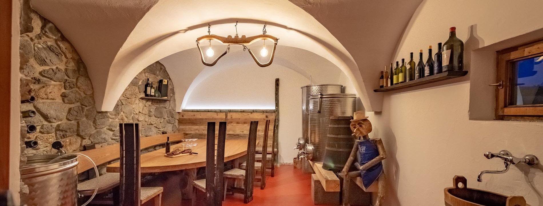 Vacanza e gusto – un binomio inscindibile. Per questo motivo la vacanza presso il Bruggnhof prevede sempre anche una visita alla cantina dei vini con degustazione. La nostra tradizionale cantina dei vini offre la cornice ideale per una serata in allegra compagnia, sia in primavera, sia in autunno.